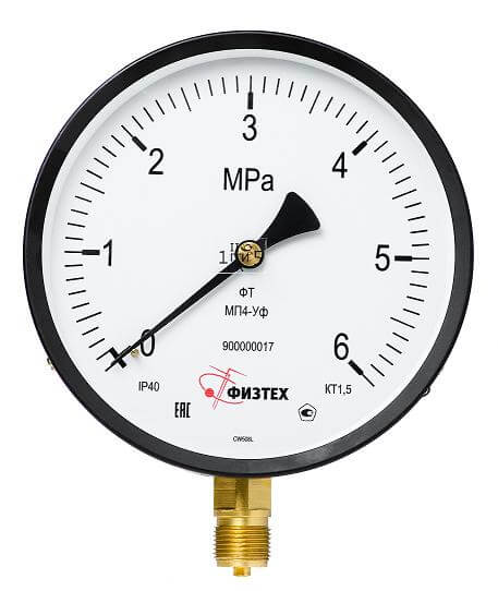 Манометр показывающий технический радиальный МП4-Уф предназначен для измерения давления воды, воздуха, газа, не кристаллизующихся и не агрессивных по отношению к медным сплавам сред.